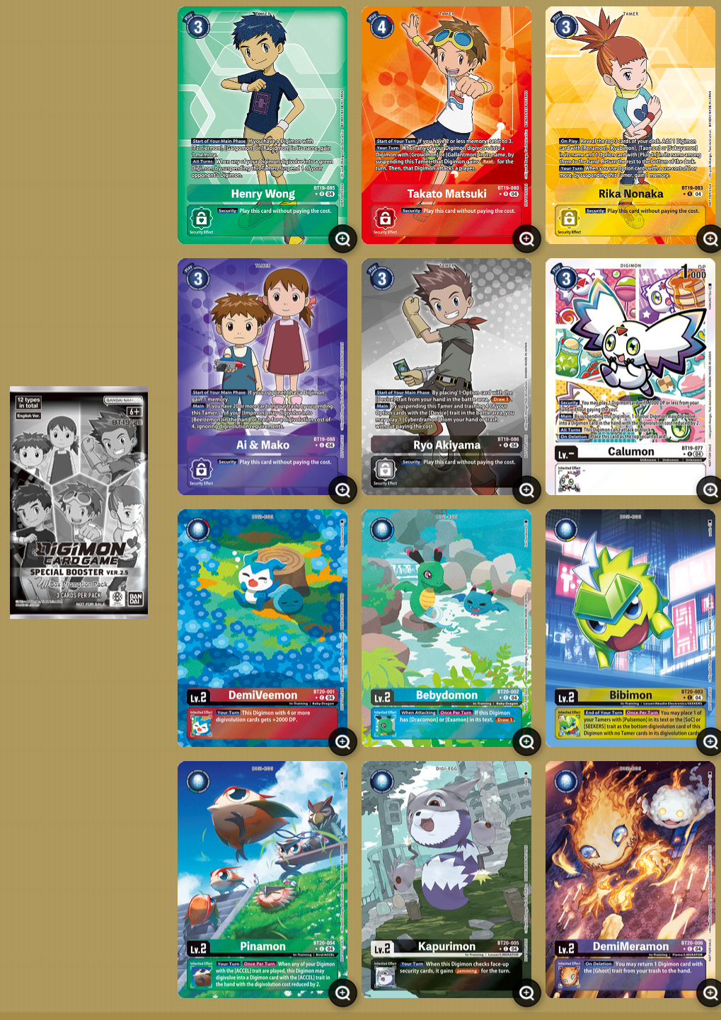 Jedes Display von SB 2.5 enthält ein Boxtopper Pack. Es enthält eine zufällige Auswahl von drei aus zwölf möglichen Karten, wobei es sich um Full Art Foil Versionen oder minimal abgeänderte Hintergründe der fünf Digimon Tamers Tamer, Calumon und sechs Digiei Karten handelt. Wie üblich unterscheiden sich Effekte nicht von den im Set enthaltenen Versionen.