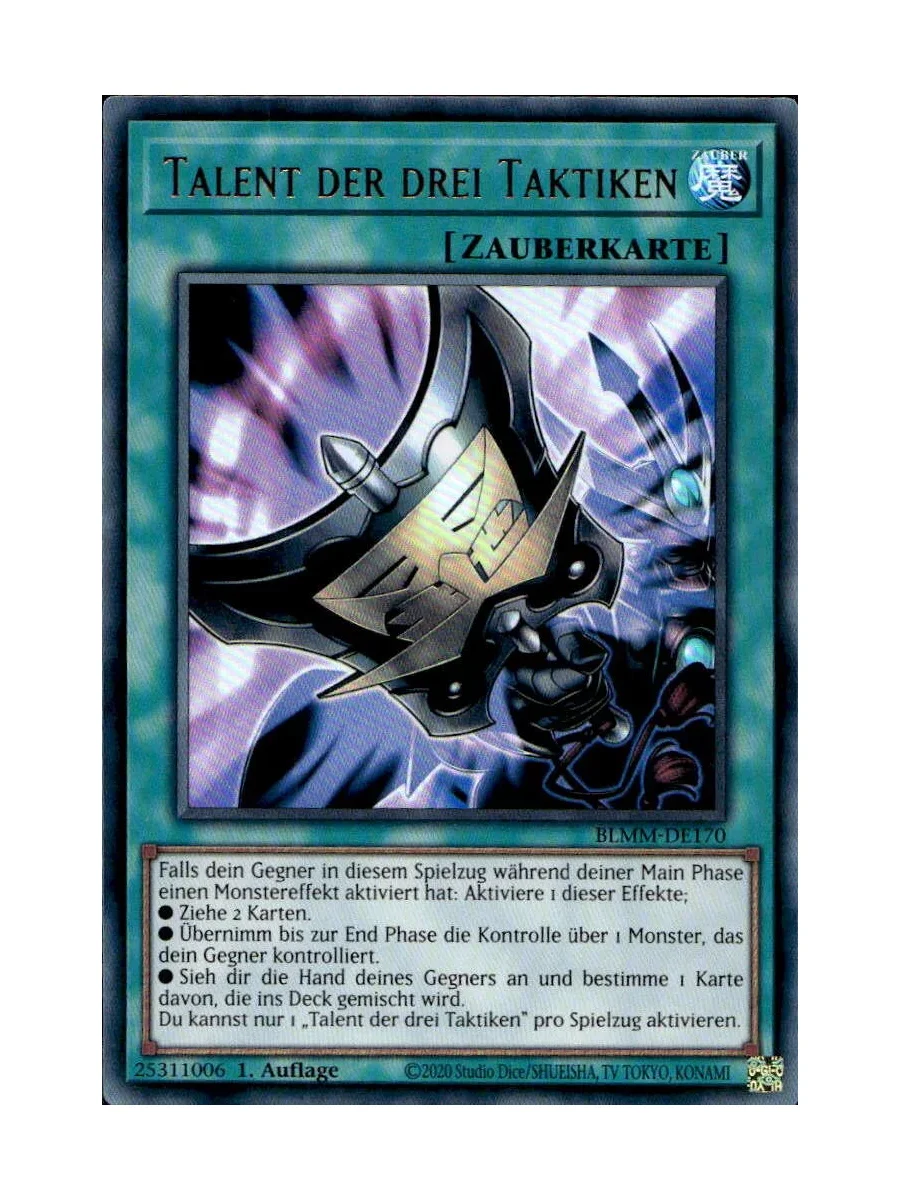 Talent der drei Taktiken ist zwar limitiert, trotzdem kann man nie genug Exemplare dieser Karte haben. Ein neuerlicher Reprint ist daher willkommen, zumal diese Staple in fast alle Decks passt. Selbiges gilt auch für Verbotener Tropfen. Der ist nicht durch die Banlist reguliert und darf dreimal gespielt werden, was ihr auch tun solltet, sondern euer Build es zulässt. Als Boardbreaker ist diese Karte Gold wert und auch hier wollt ihr genug Exemplare haben, um sie am besten in jedes eurer Decks zu spammen.