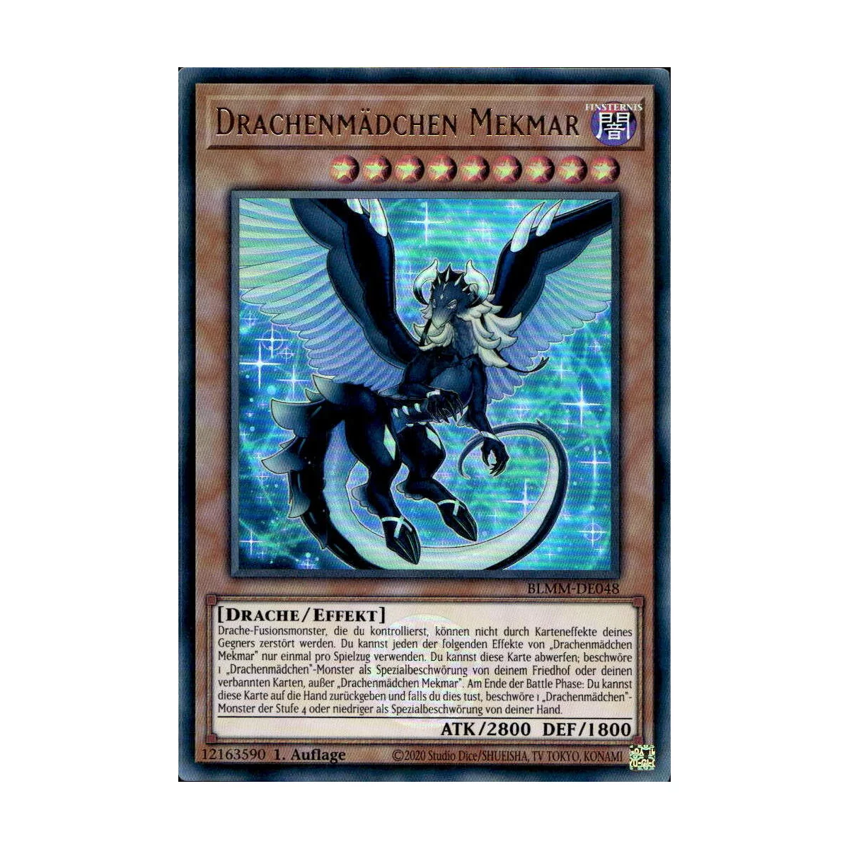 Drachenmädchen Mekmar schützt eure Fusionsmonster vom Typ Drache vor Zerstörung durch gegnerische Karteneffekte. Andernfalls könnt ihr aber Mekmar auch einfach von der Hand abwerfen und ein Drachenmädchen vom Friedhof oder der Verbannung beschwören. Vom Friedhof recycelt sich Drachenmädchen Mekmar dann sogar selbst, denn am Ende der Battle Phase kehrt sie auf eure Hand zurück und beschwört ein Drachemädchen mit maximal Stufe 4 von der Hand. Sehr nett und für den Gegner recht mühsam.