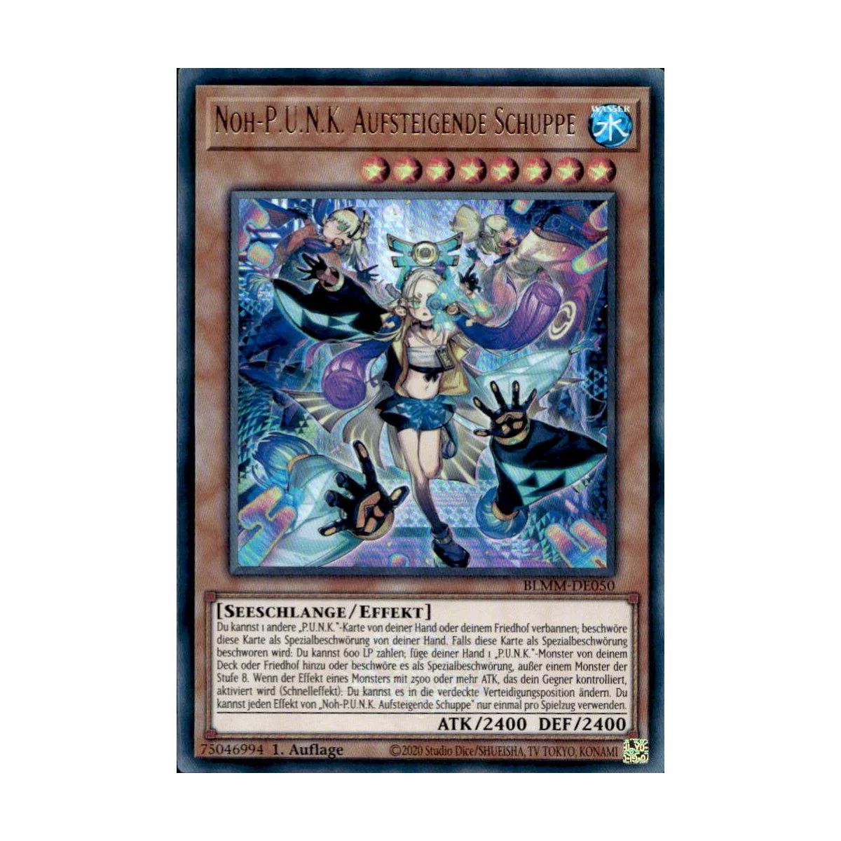 Noh-P.U.N.K. Aufsteigende Schuppe könnt ihr spezialbeschwören, indem ihr ein anderes P.U.N.K.-Monster von der Hand oder den Friedhof verbannt. Auf Beschwörung könnt ihr dann die üblichen 600 Lebenspunkte zahlen und ein P.U.N.K.-Monster vom Deck oder dem Friedhof entweder auf die Hand nehmen oder spezialbeschwören. Das geht aber nicht mit Monstern der Stufe 8. Außerdem könnt ihr ein gegnerisches Monster per Schnelleffekt booken, wenn dieses über mindestens 2500 ATK verfügt und seinen Effekt aktiviert.