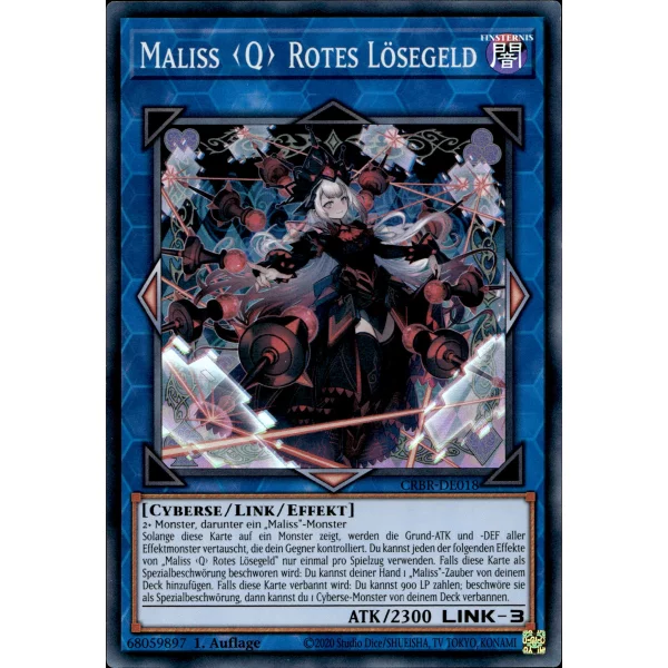Dieses Link-3-Monster vertauscht die ATK und DEF aller gegnerischen Effektmonster, solange Maliss <Q> Rotes Lösegeld auf ein Monster zeigt. Außerdem sucht sie euch auf Beschwörung eine Maliss-Zauberkarte aus dem Deck und auch über den Wiederbelebungseffekt für die bekannten 900 Lebenspunkte verfügt Rotes Lösegeld.