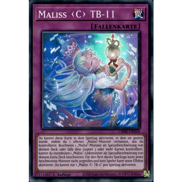 Man ist ja als Yugi-Spieler viel gewohnt, aber die Namen der Maliss-Fallen sind schon arg speziell. Wie dem auch sei, auch hier gilt: Aktiviere diese Karte im selben Zug, in dem sie gesetzt wurde. Mit Maliss <C> TB-11 beschwört ihr ein Maliss-Monster vom Deck oder könnt sogar eine Linkbeschwörung durchführen, sofern der Gegner drei oder mehr Karten kontrolliert. Der Effekt kann zwar für die Dauer des Spielzugs nicht aktiviert werden und angreifen kann das Linkmonster auch nicht, aber ihr habt niederschwelligen Zugang zu euren Linkmonstern.