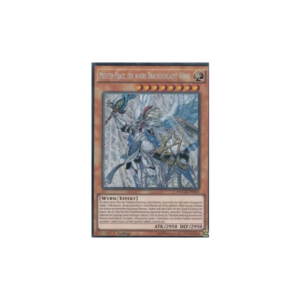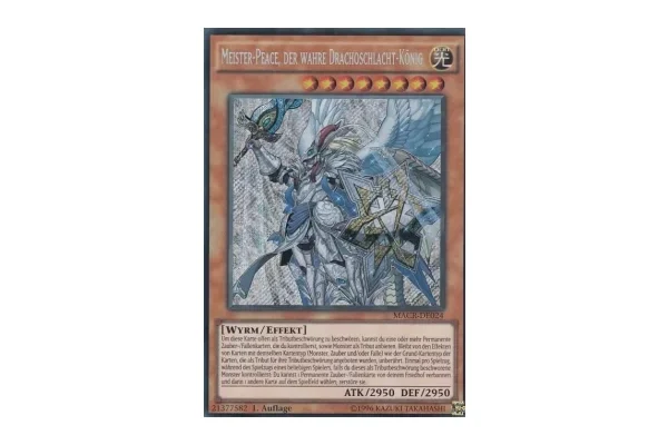 Auch Meister-Peace, der wahre Drachoschlacht-König kehrt aus dem Verbot zurück. Diese Karte hatte bisher nur einen Print aus Maximum Crisis und der ist immerhin acht Jahre alt. Was für ein willkommener Zufall also, dass Meister-Peace in der Quarter Century Stampede im Nostalgie-Pool enthalten ist und somit als Quarter Century Secret Rare und als Platinum Secret Rare gereprintet wird.