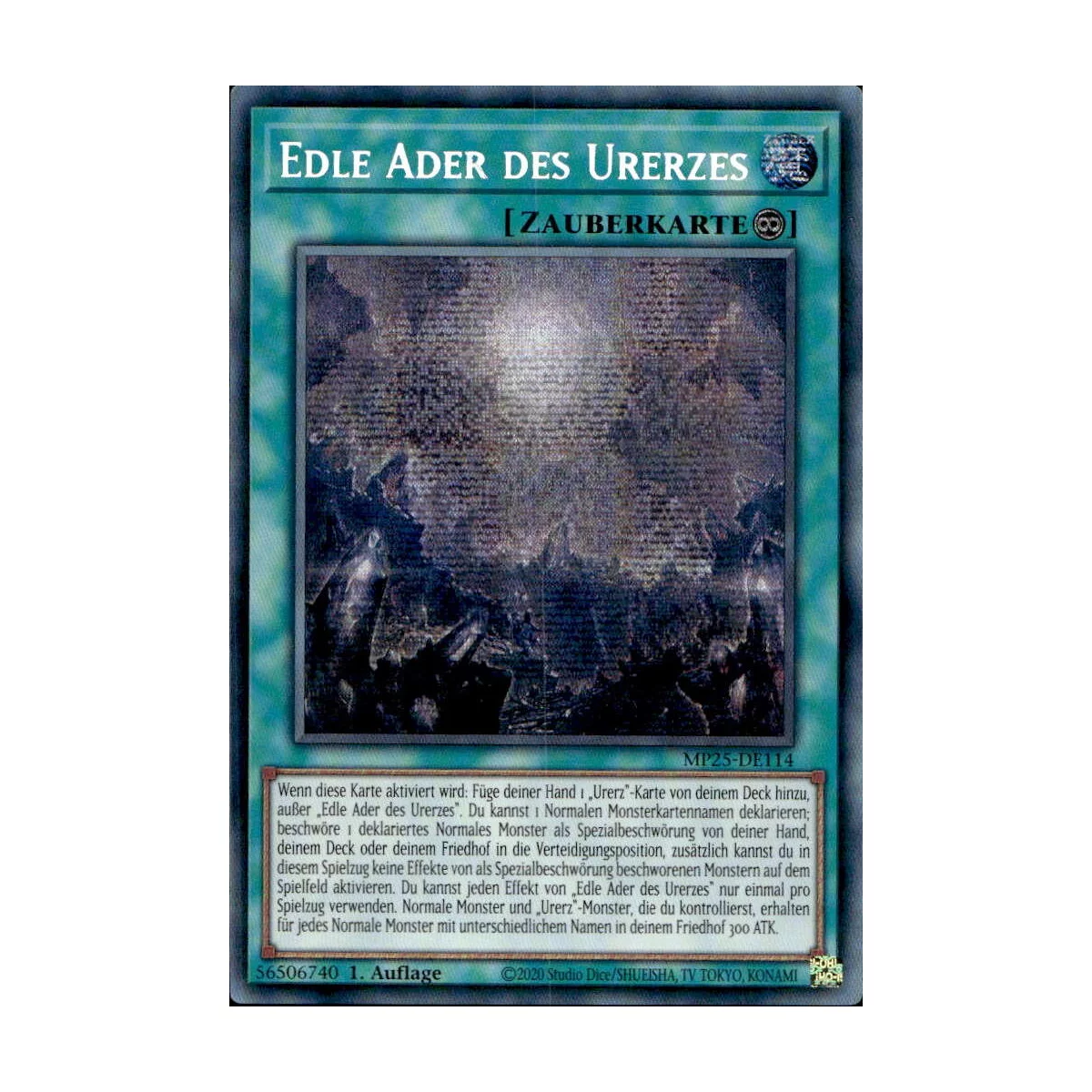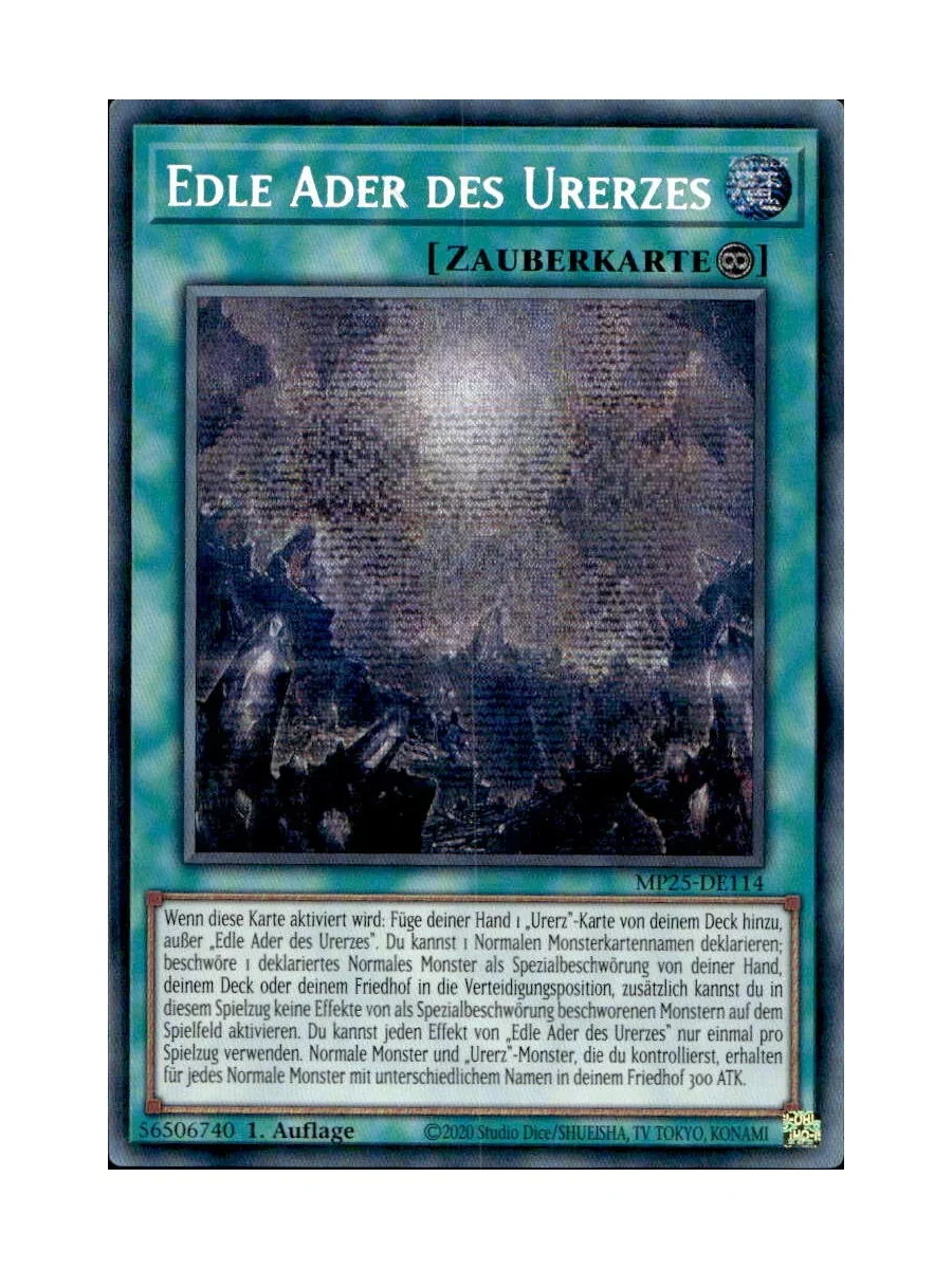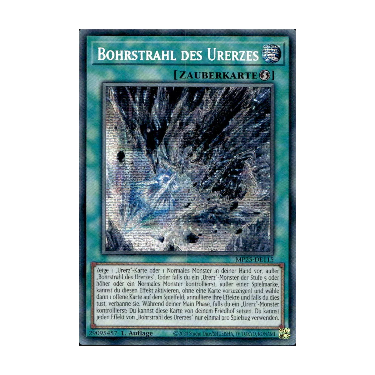 Zu erwähnen ist dabei, dass ihr Urerz Drache Ätherberyll nicht aus der Tin ziehen könnt, denn der ist erst Anfang des Jahres in Supreme Darkness erschienen. Aber hier greift ihr dann einfach auf den Reprint aus Monster Mayhem zurück, denn da war er drin. Edle Ader des Urerzes und Bohrstrahl des Urerzes findet ihr in beiden Produkten und könnt da beliebig nach Preis oder Optik gehen. Ich zum Beispiel mag den normalen Secret Rare Effekt sehr gerne, bin aber kein Fan von Prismatic Secret Rares – Geschmackssache eben.