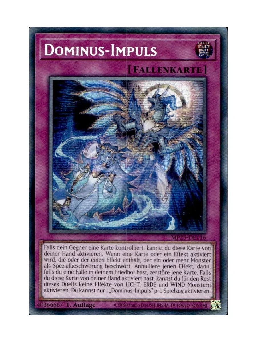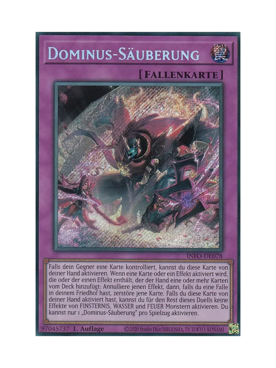 Dominus-Impuls und Dominus-Säuberung sind im aktuellen Spiel wichtige Karten, denn gerade durch K9 muss die Aktivierung von Monsterkarten in der Hand – sprich: klassischen Handtraps – wohlüberlegt sein. Selbst wenn ihr die beiden Dominus-Karten aktuell nicht spielen könnt, weil sie ja durch ihren Handtrap-Effekt gewisse Monstereigenschaften blockieren, solltet ihr beide Karten als Playset besitzen, denn im Staples Binder machen die sowieso eine gute Figur und früher oder später werdet ihr ein Deck spielen, in dem ihr sie nutzen könnt.