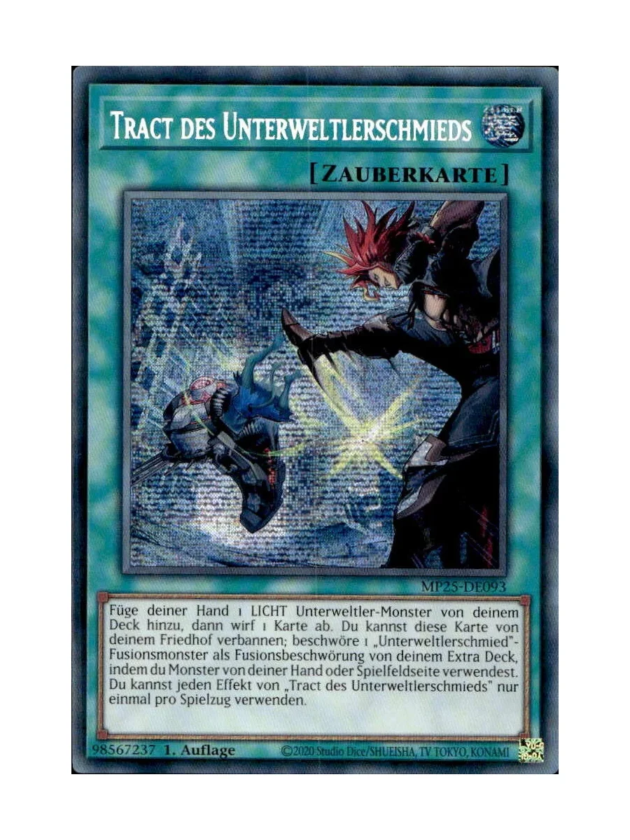 So oft schon haben wir über Graveur, Requiem und Co gesprochen, ich möchte das hier daher recht knapp halten. Schade, dass wir in der Rarity Collection 4, also der Quarter Century Stampede, nur Unterweltlerschmied Graveur bekommen haben. Diese Lücke füllt nun, wie erwartet, die Mega Tin. Zwar sind Tract des Unterweltlerschmieds und Requiem des Unterweltlerschmieds als Prismatic Secret Rares keine Karten im Cent-Bereich, aber doch deutlich günstiger als bisher. Das bringt nun aber die Bredouille mit sich, ob die Engine auf der Banlist überhaupt angefasst wird. Einerseits wäre das kein neues Vorgehen, dass Konami nach einem erschwinglichen Reprint Karten verbietet, andererseits geschah das nie unmittelbar nach dem Reprint, sondern immerhin mit einer Gnadenfrist von vielleicht sechs Monaten. Zugleich ist der Wunsch in der Community nach einer Einschränkung schon da, aber das war auch bei der Abenteurer-Engine der Fall und die ist einfach auf gesundem Wege aus dem Spiel rausrotiert. Ähnliches lässt sich ja auch aktuell beobachten, denn die momentanen Top-Decks wie Lecker oder Bezwingerseele greifen kaum mehr auf die Unterweltlerschmiede zurück. Vielleicht bleibt die Engine also erst einmal unangetastet und wandert einfach durch den Powercreep aus dem Metagame raus. Ich jedenfalls habe mir die Engine trotz drohender Banlist nun einfach mal zugelegt und werde sie mit Odion zusammenwerfen. Und wenn sie eingeschränkt oder verboten wird, wandert sie in meinen Engine-Ordner und leistet dort all den vergessenen Engines Gesellschaft, die einst stark und mittlerweile nur noch schön anzusehen sind. Der Wandel der Zeit macht halt auch vor glitzernden Rechtecken aus Pappe nicht Halt.