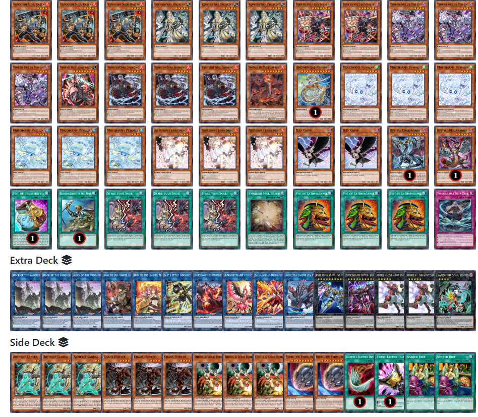Natürlich schauen wir uns direkt einmal das Siegerdeck Lorenzos Musellis an. Bezwingerseele ist eigentlich ein turniererfahrenes Deck, Age of Overlord und nun Duelist‘s Advance haben dem Deck aber haufenweise Spielzeug dazugegeben, sodass die Listen mit den ersten Builds auf Grundlage von Wild Survivors kaum noch zu vergleichen sind. Auf die Bezwingerseele-Karten bin ich bereits 2023 eingegangen, die neue wichtige Mitstreiterin Bezwingerseele Hollie Sue habe ich euch in meinem Artikel über Duelist‘s Advance vorgestellt, sodass ich hier nun nicht weiter auf die einzelnen Karten des Deckthemas eingehen werde.