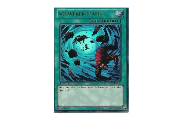 Blitzsturm war nach Release eine wahnsinnig begehrte und entsprechend teure Karte. Die Reprints in der Rarity Collection sowie die Semilimitierung haben den Preis dieser Karte aber drastisch reduziert und sie aus dem aktiven Spiel befördert. Auch wenn sie derzeit nur zweimal gespielt werden darf, solltet ihr unbedingt ein Playset besitzen, denn Banlisten kommen und gehen, irgendwann kann also auch Blitzsturm zurück auf drei – zumal ich diese Restriktion eh nie so ganz verstanden habe.
