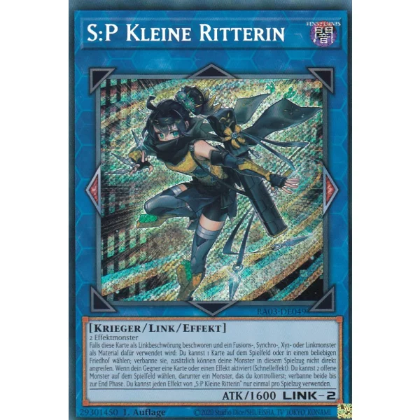 Die Kleine Ritterin ging nach ihrem Release um die 100 Euro. Durch den frühen Reprint in der Rarity Collection, genauer gesagt in der Quarter Century Bonanza, bekommt ihr die niedrigeren Raritäten für unter 10 Euro und da solltet ihr wirklich nicht zögern. S:P Kleine Ritterin passt in nahezu jedes Deck, ist ein generisches Extra Deck Monster, das Druck auf den Gegner ausübt und keine besonderen Beschwörungsbedingungen hat. Mit I:P Maskerena beschwört ihr sie im gegnerischen Spielzug und nehmt entscheidende Karten des Gegners aus dem Spiel. Hier gibt es also nicht viel zu überlegen. Auch wenn ich grundsätzlich ein Fan davon bin, Karten als Playset zu besitzen, muss das hier nicht unbedingt sein, denn ihr werdet keine drei Exemplare spielen – anders sieht es natürlich aus, wenn ihr mehrere Decks habt und sie in allen Decks haben wollt.